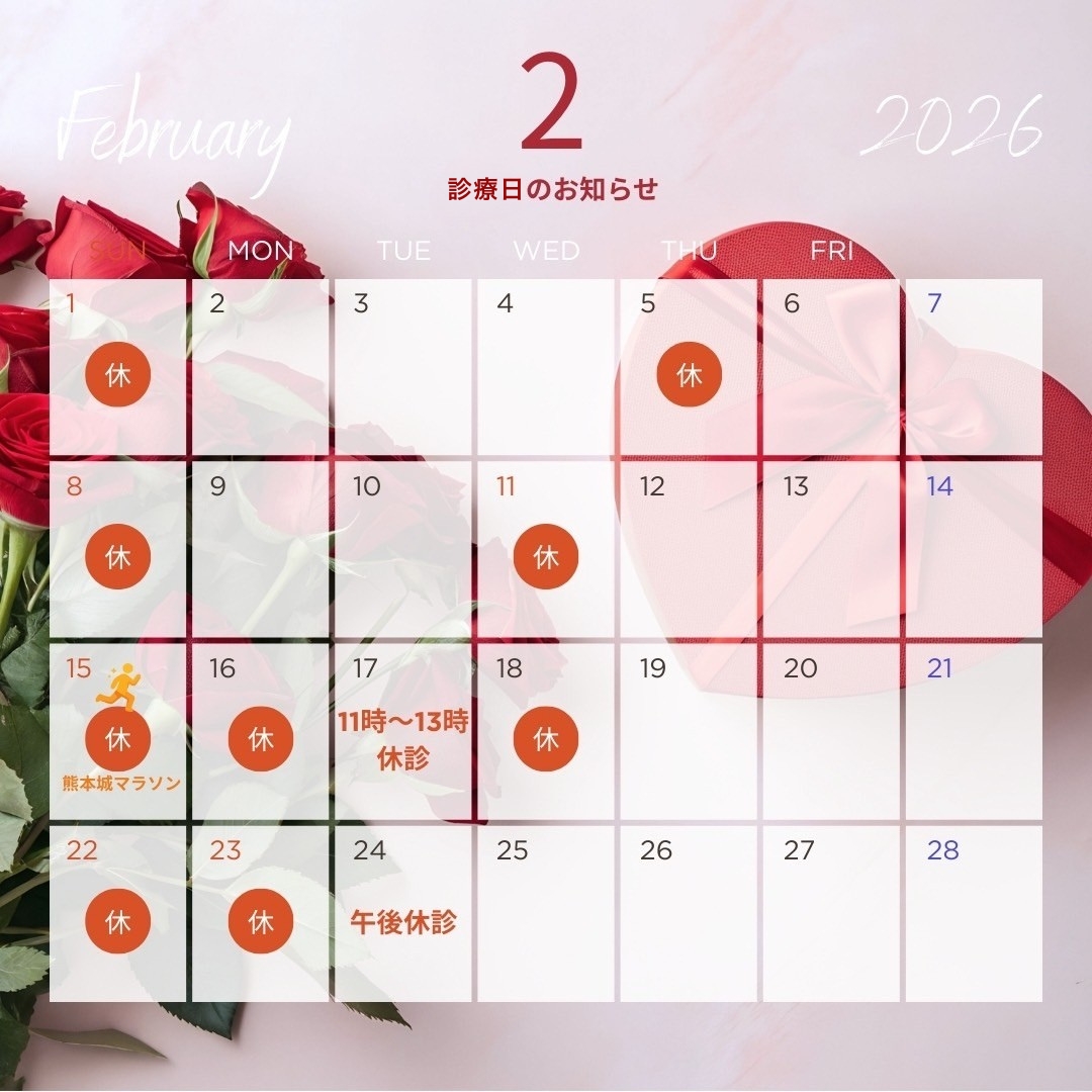 さて、2月の診療日をお知らせいたします☺️