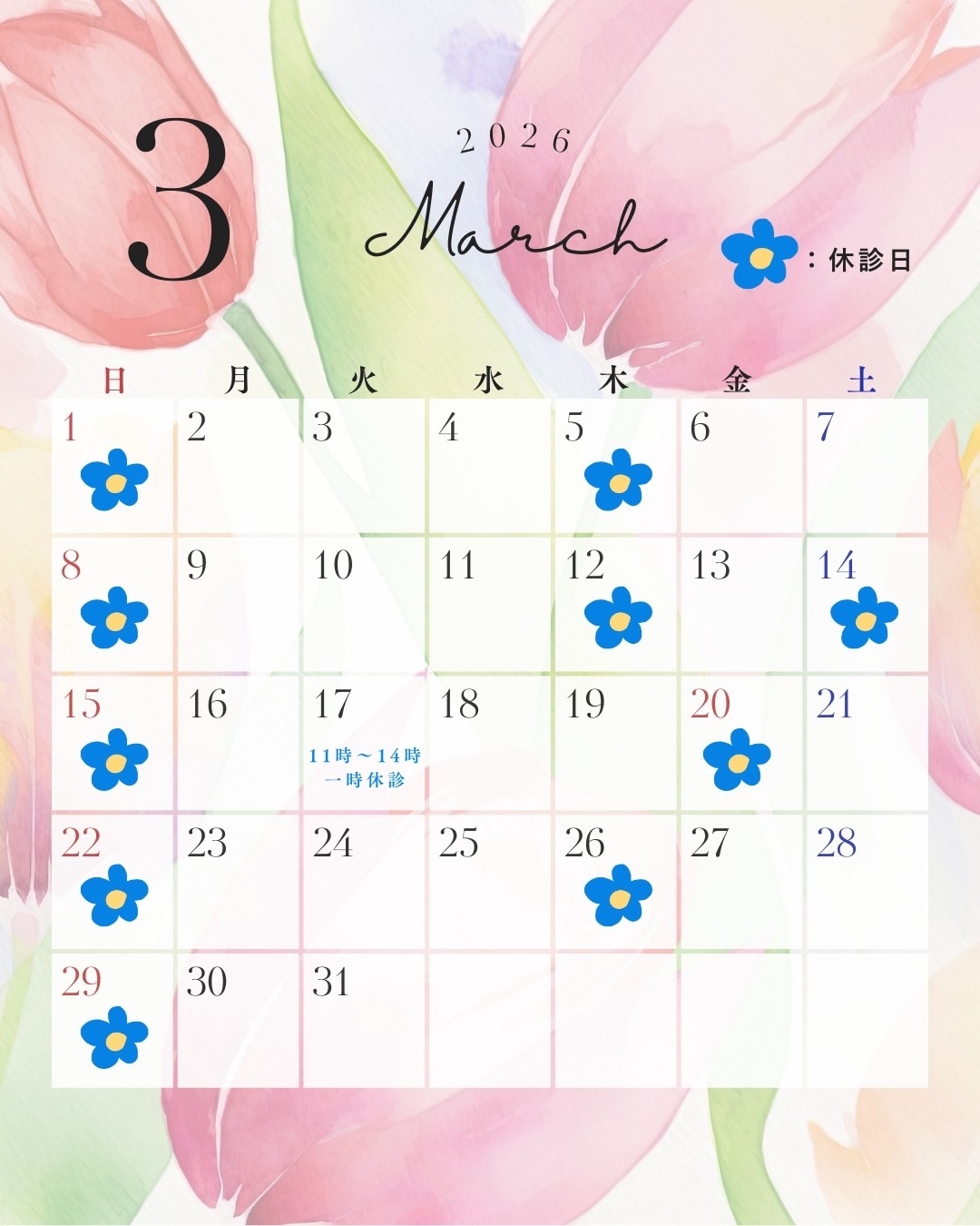3月の診療日のお知らせ🌷